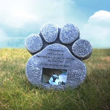 Pet Memorial Stone Paw Print Photo Frame Grave Pet Monument Tombstone For Dogs Cats Animal Funeral Tombstone
