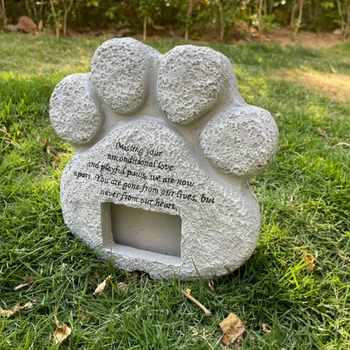 Memorial Tombstone for Pet Keepsake Gravestone Tomb Dog Cat Paw Print Animal Funeral Footprint Shaped Can Put Photos