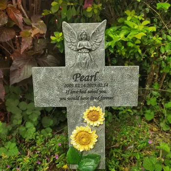 - There is a solemn cross on the pet memorial stone, with an angel’s hand in relief above and two sunflowers in full bloom below. In the middle of the dog memorial stone, we provide customized services, such as name, date, sentence, epitaph, etc.