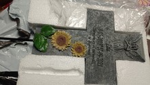 - There is a solemn cross on the pet memorial stone, with an angel’s hand in relief above and two sunflowers in full bloom below. In the middle of the dog memorial stone, we provide customized services, such as name, date, sentence, epitaph, etc.