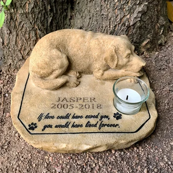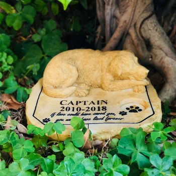 Pet Dog Grave Memorial Stone Markers Resin Statue Crafts 3D Puppy Tombstone Sculpture Sympathy Loss Of Dog Figurine Garden Gift